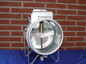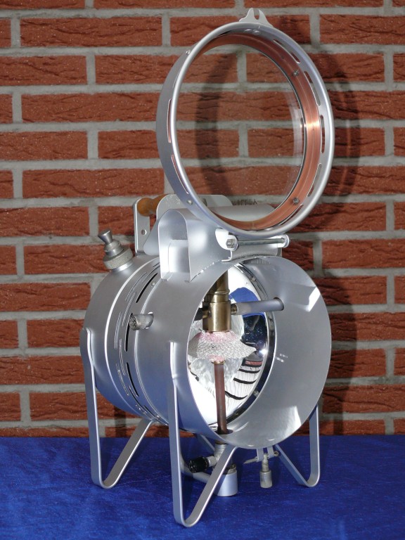 Gehäuses, das Petroleum gelangt über eine Leitung zum Vergaser, dieser ist baugleich mit dem Vergaser von z.B. einer Tilley 246.