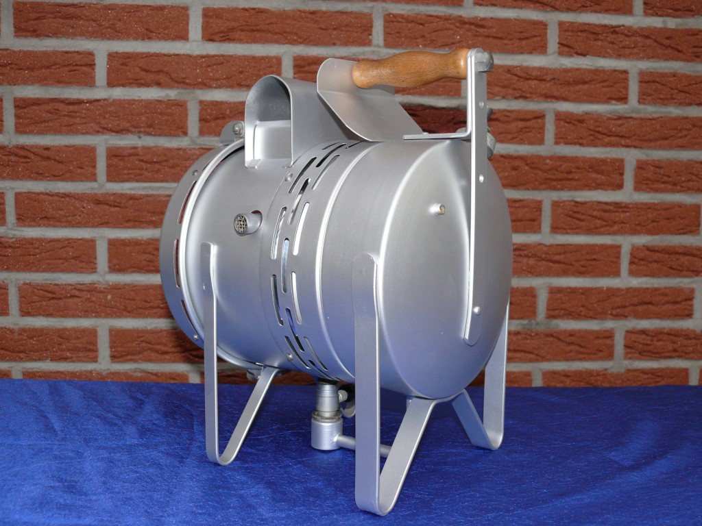 den Vergaser weiter vorheizen. Kurz bevor die Flammen ausgehen öffnet man das Ventil unten am Vergaser, und pumpt