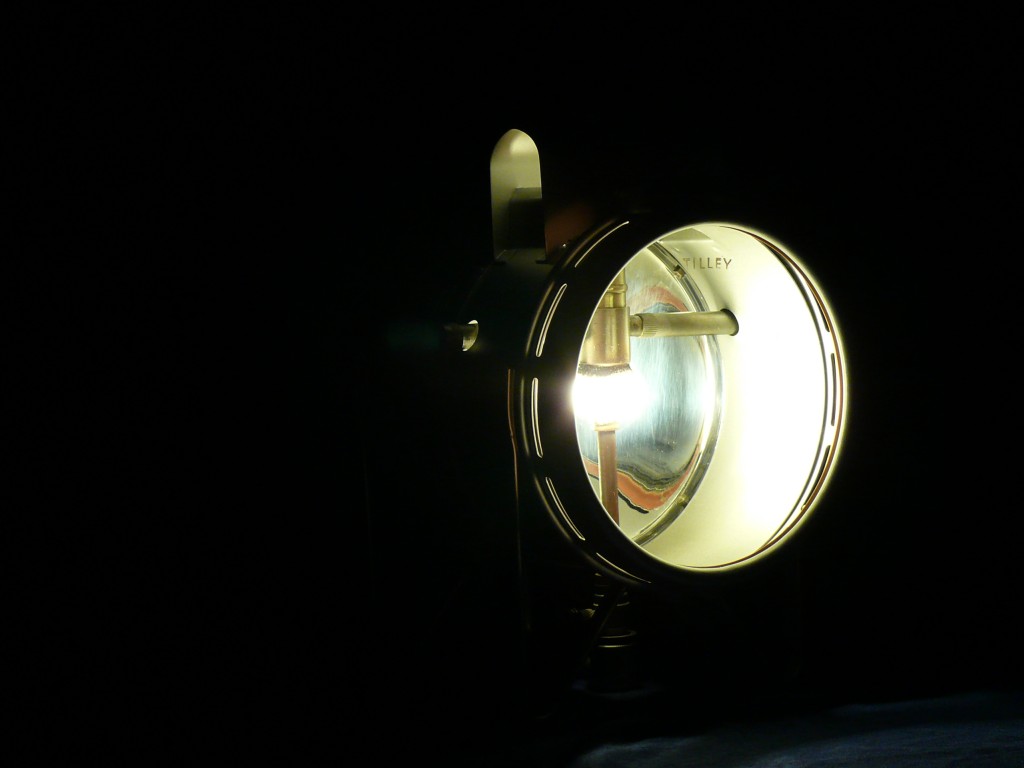 Durch den Parobolspiegel wird das Licht stark gebündelt, so dass man die Lampe als Scheinwerfer benutzen kann. Der Hersteller