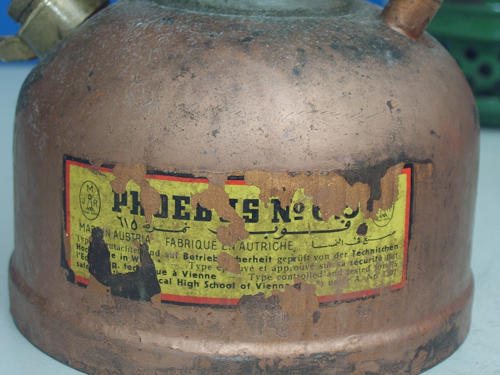 Brennstoff: Petroleum oder Benzin, Vorwärmen mit Spiritus