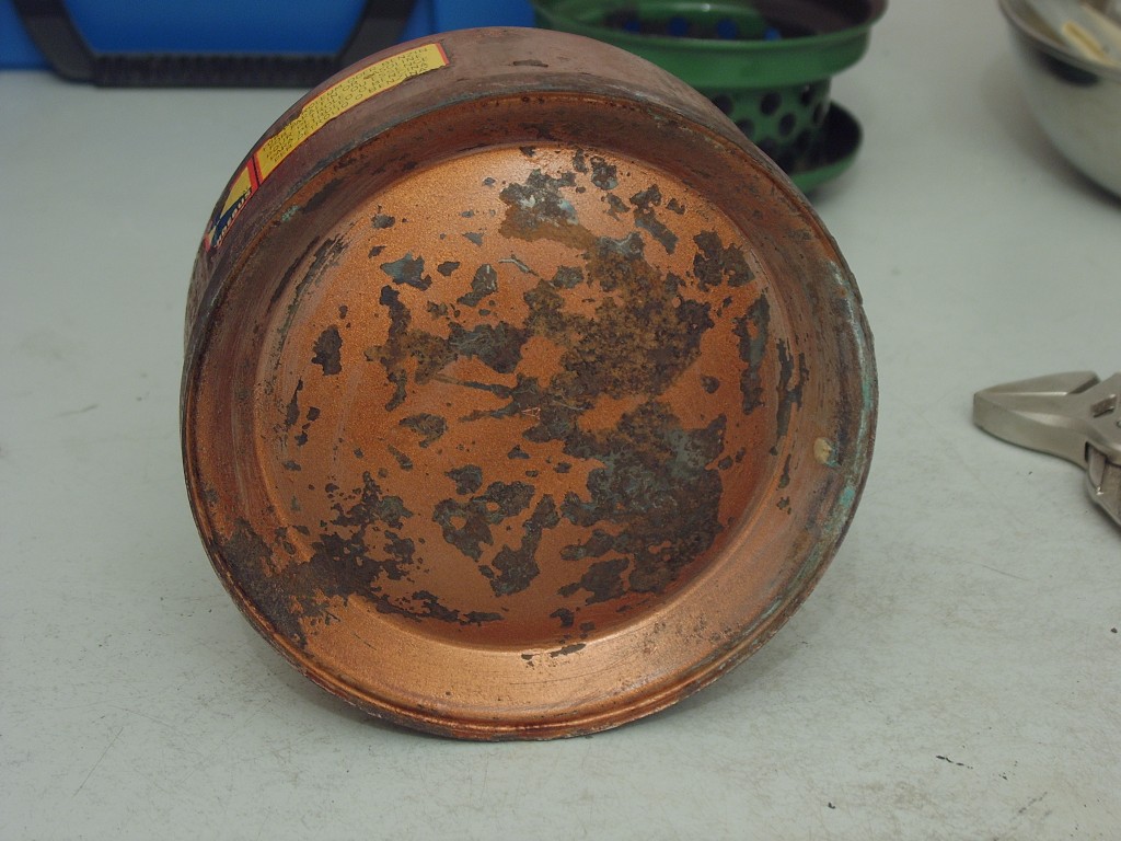 Bei dieser Lampe ist der Tank aus Stahlblech gefertigt, und anschließend lackiert. Dementsprechend war der Zustand des Tankes. Gut